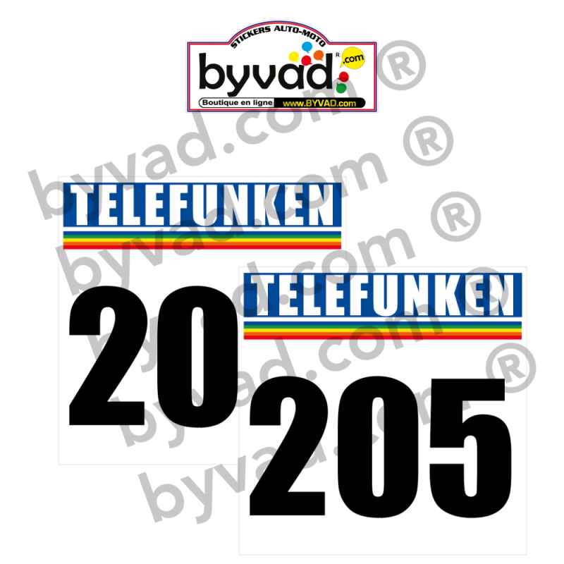 Jeux de deux stickers fonds de portière pour numéro PARIS ALGER DAKAR 1987 TELEFUNKEN