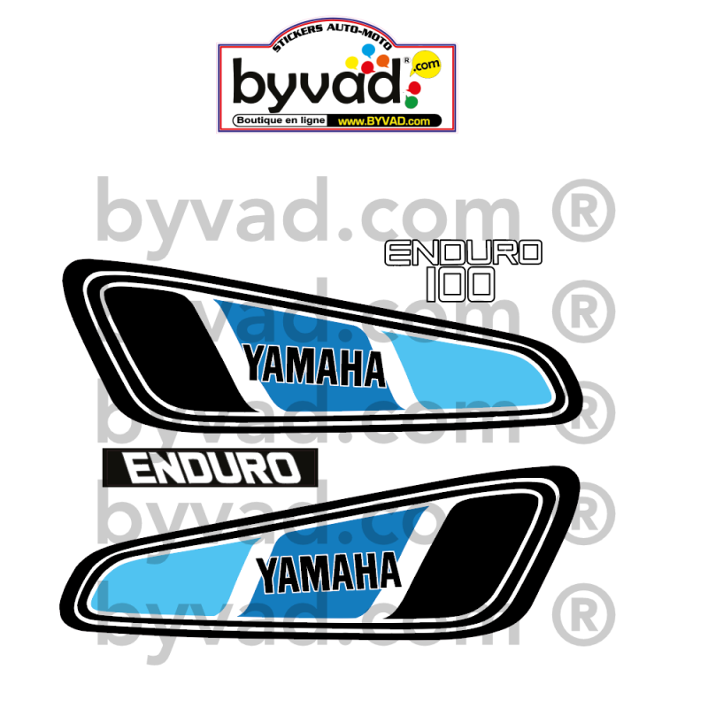 Réf.: DECO_YAMAHA_DT100_1977Kit complet stickers YAMAHA DT 100 1977 YAMAHA DT 100 ou YAMAHA 100 DT ou YAMAHA ENDURO 100