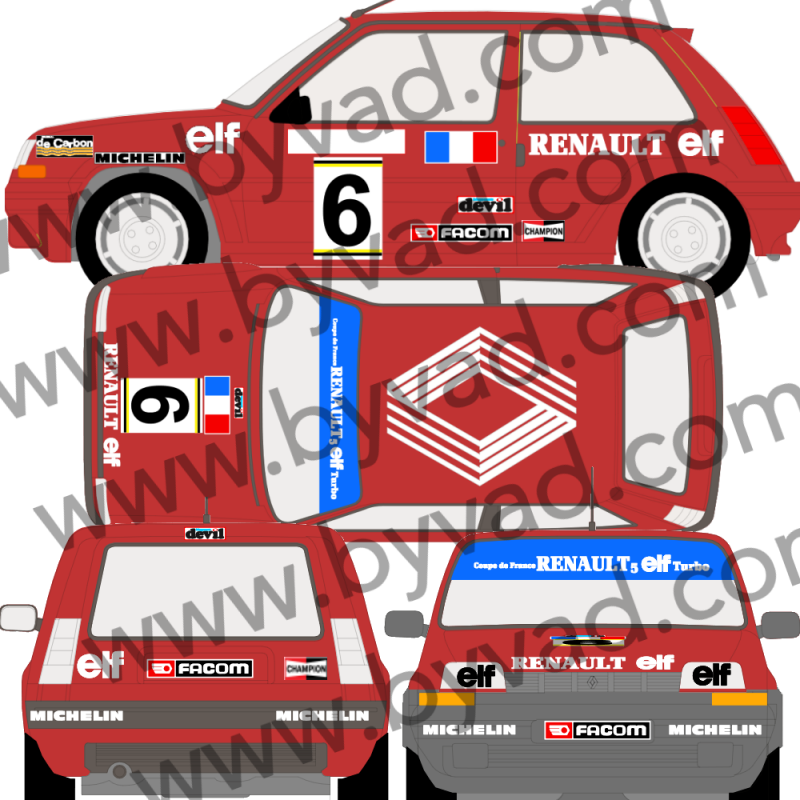Kit déco adhésif Renault 5 GT Turbo coupe livré sans pare soleil