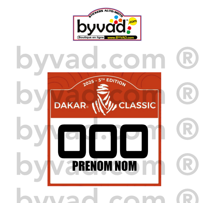 Réf.: 2025_DAKAR_CLASSIC_175Plaque de rallye, DAKAR CLASSIC 2025 - 175 x 175 mm personnalisable